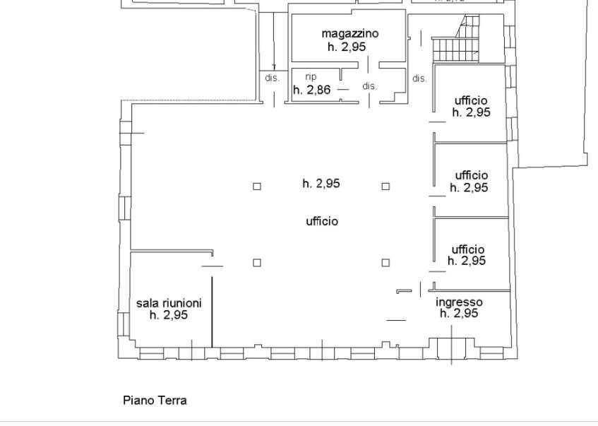 L'immobile di circa 230 mq è disposto al piano terra con comodo ingresso, al momento suddiviso in area centrale, 3 uffici, una sala riunioni e magazzino con ripostiglio.