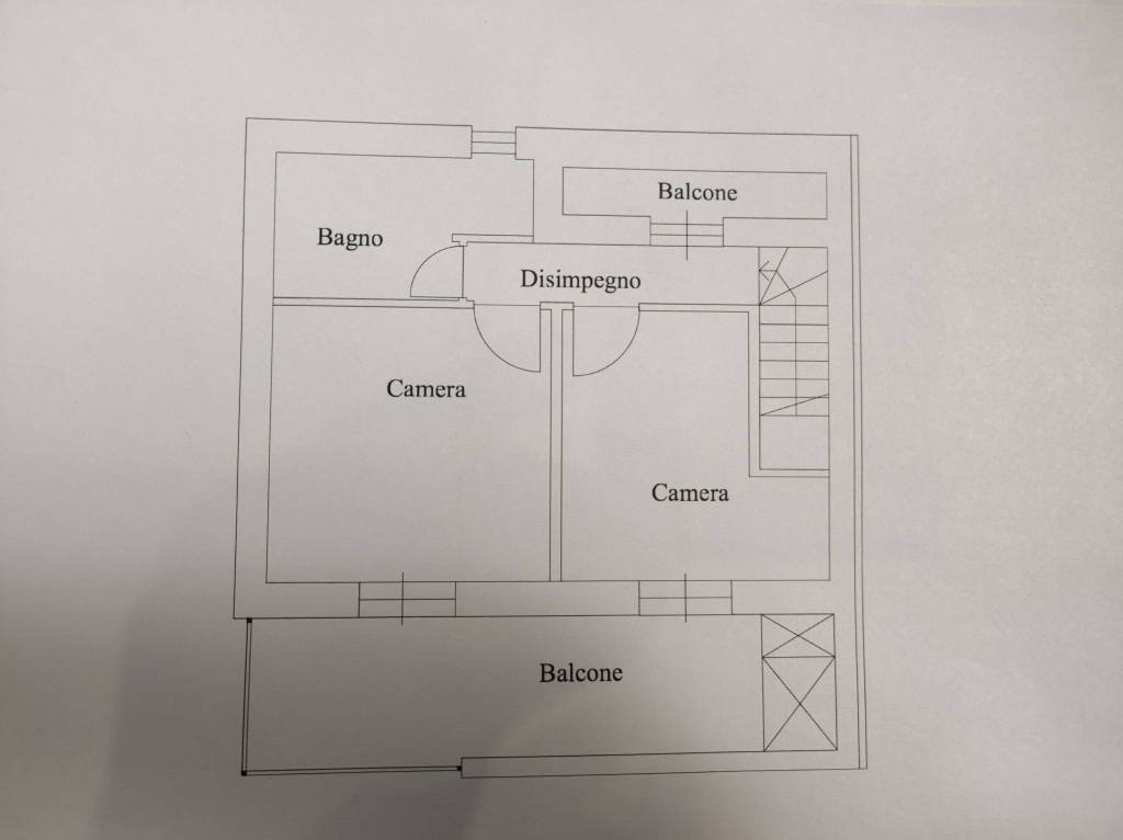 - Piano Primo: due camere da letto, ampio bagno finestrato, corridoio con terrazzino riservato e ulteriore terrazzo panoramico;