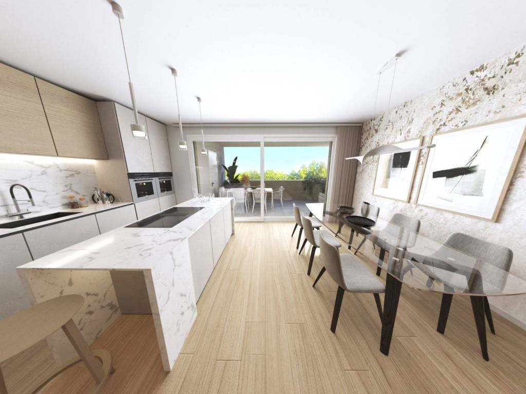 Le unità disponibili offrono soluzioni con 2, 3 o 4 camere, doppi servizi, lavanderia, ripostiglio e ampie zone giorno con grandi vetrate che si affacciano su terrazze abitabili.