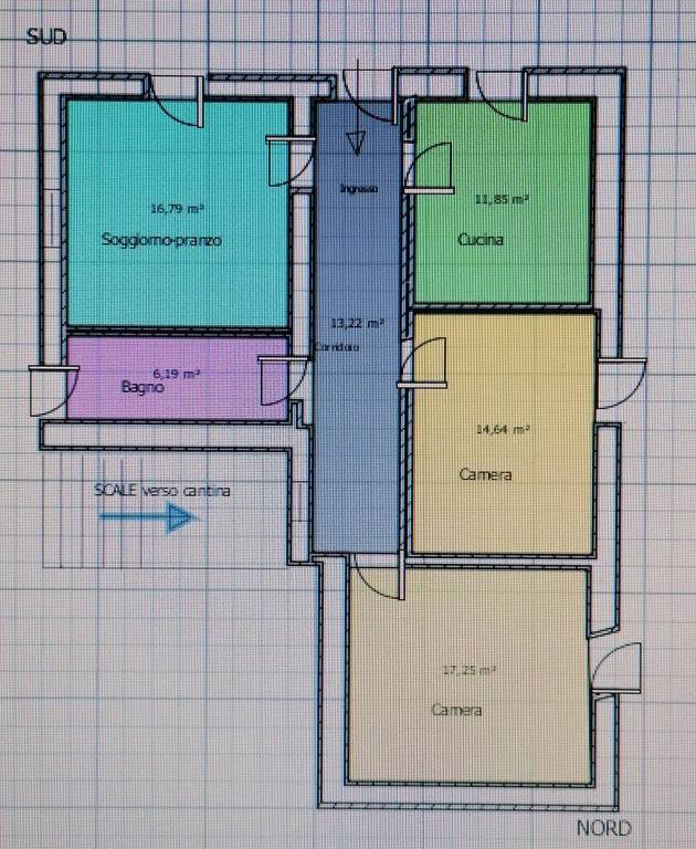 - Con il facile abbattimento di qualche tramezzo si può realizzare una distribuzione più moderna degli spazi recuperando buona parte del corridoio ed ampliando la zona della attuale cucina.