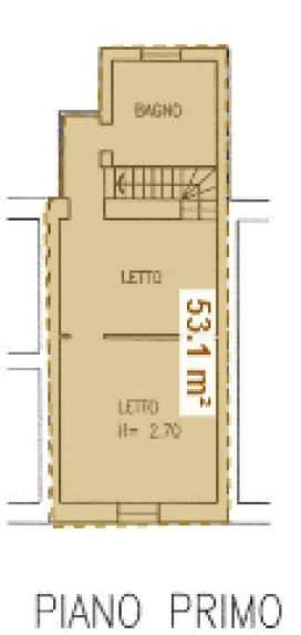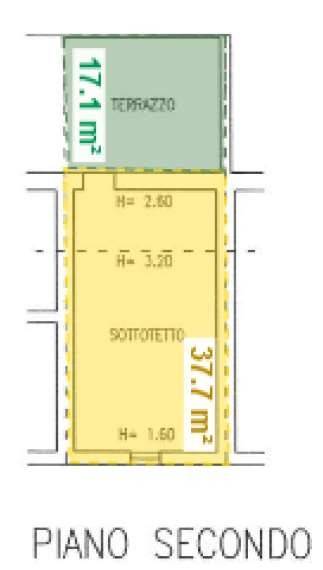 In zona centralissima, cielo-terra di 140 mq commerciali cosi' composto: al piano terra doppio accesso indipendente: cucina, soggiorno e sala da pranzo con volte a botte e scala a pioli in legno e ferro battuto. Al primo piano disimpegno, bagno, due camere. Al secondo piano solaio di mq 37,7 , recuperabile con ristrutturazione, e terrazzo di 17,1 mq. In corpo fabbrica staccato box singolo con angolo lavanderia, ripostiglio, wc, sottotetto e accesso al giardino privato ed esclusivo di 83 mq.