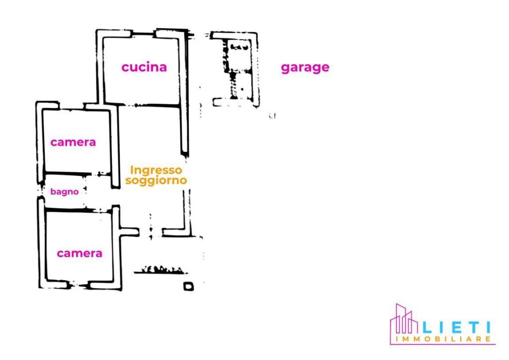L’abitazione è composta da ingresso su spazioso salone con camino, cucina abitabile, due camere da letto e bagno. All’esterno, un ampio patio ideale per momenti di relax, oltre a un comodo garage.