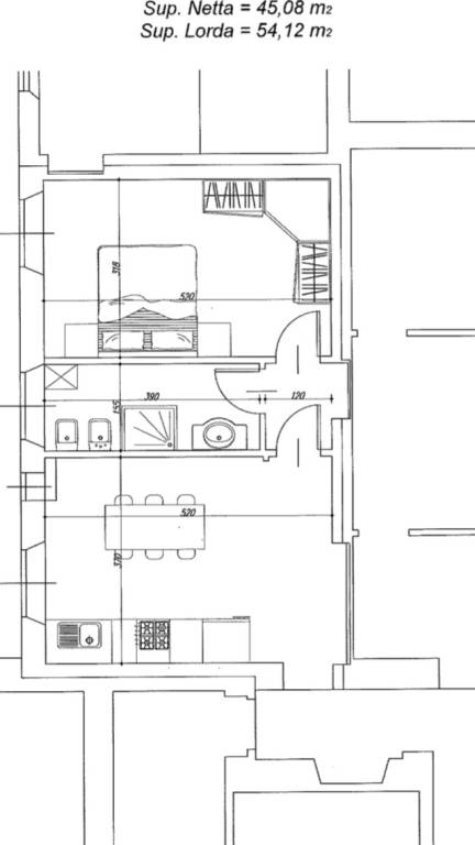 • Layout: Ingresso, soggiorno con zona cottura (solo induzione), camera matrimoniale, disimpegno, bagno con ampia doccia.