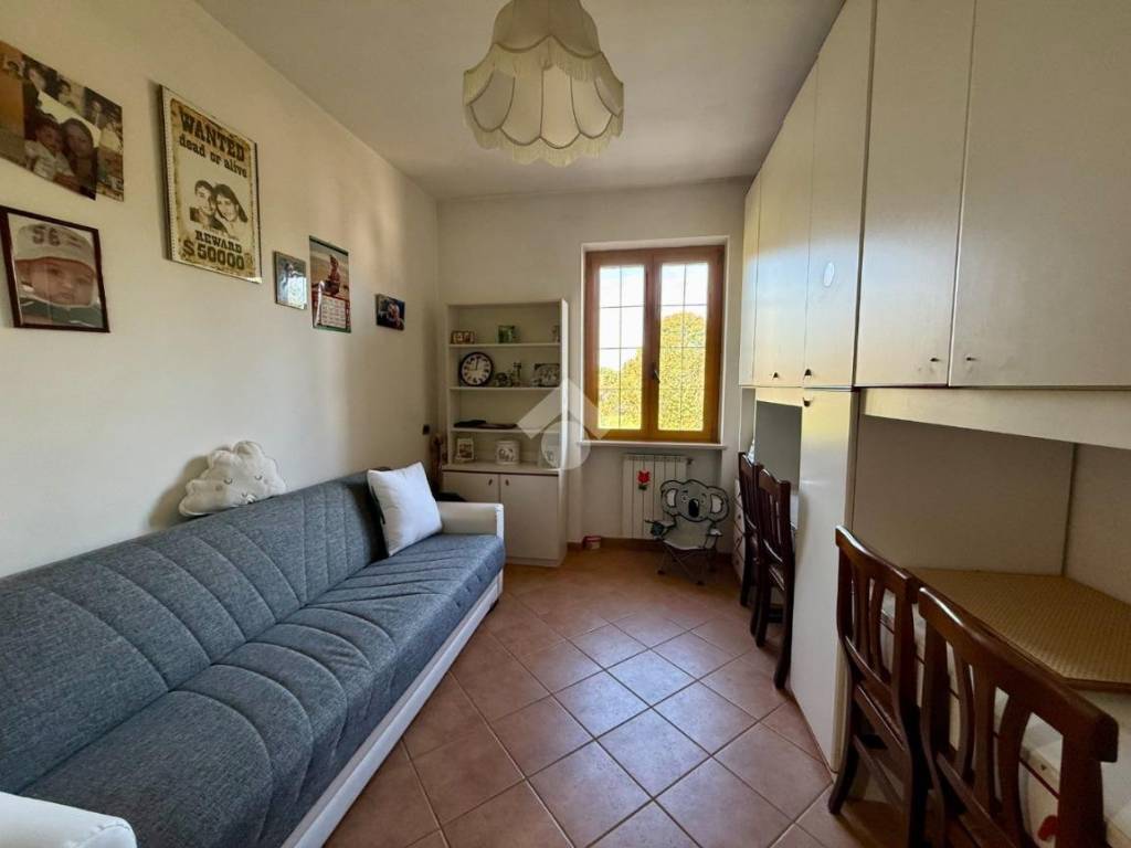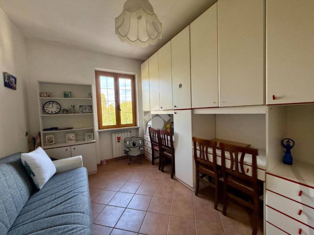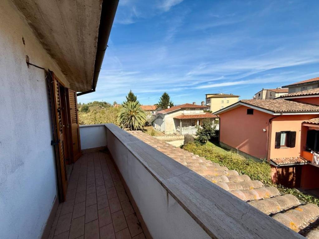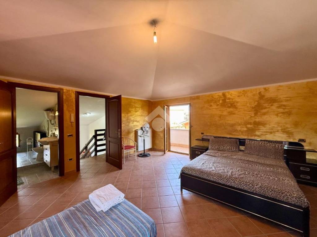 La scala interna, comoda e ben rifinita, conduce al piano superiore dove la soffitta è stata trasformata in una deliziosa suite con camera, bagno e balcone: un ambiente intimo e riservato, perfetto per momenti di relax o per ospiti.