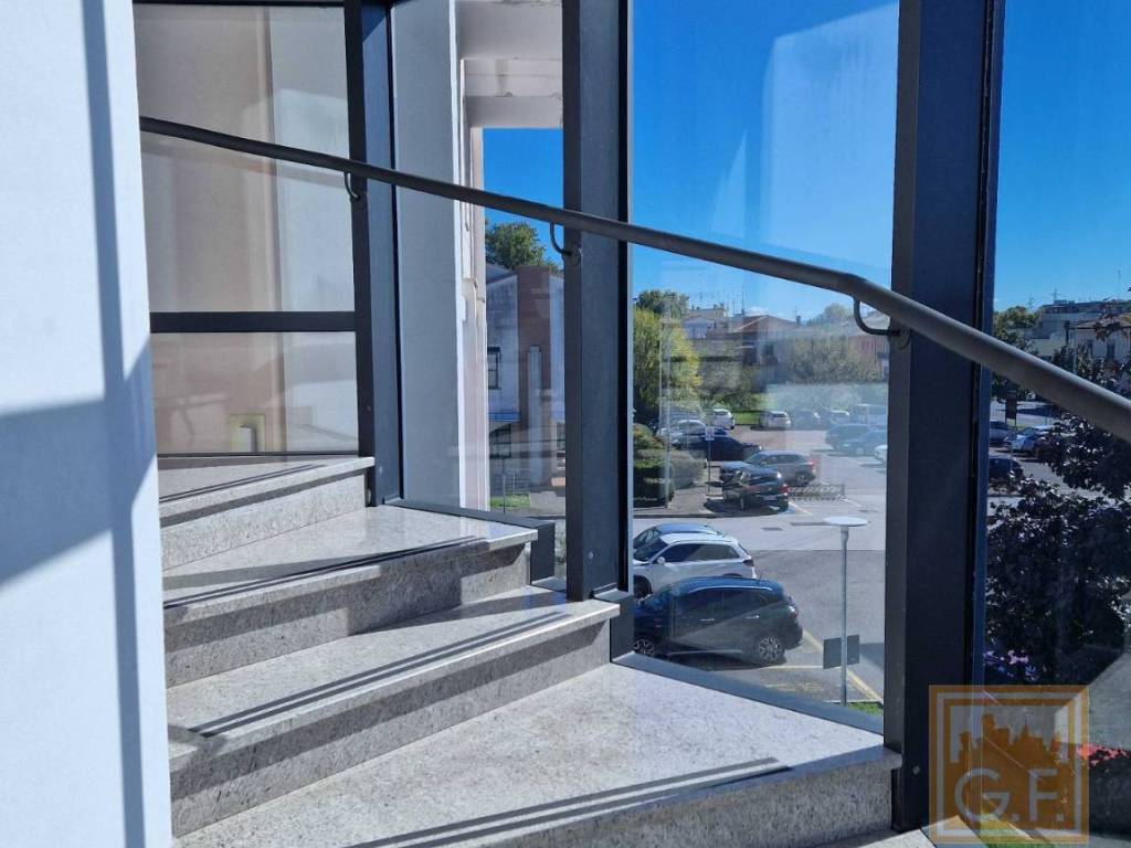 L'area antistante l'edificio offre ampi parcheggi pubblici a livello strada e spazi verdi ben curati, che valorizzano l'ingresso. All'interno dello stesso complesso immobiliare sono presenti sia uffici pubblici che privati.