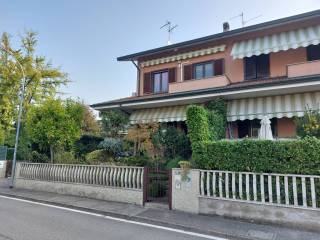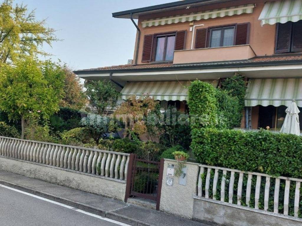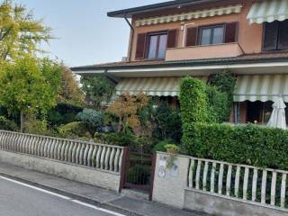 Splendida porzione di villa tri familiare ,il vantaggio di essere di testa e avere tre lati liberi con un'esposizione che consente di avere molta luce, inserita in un contesto residenziale di solo ville ,vicinissima al centro del paese, la soluzione è composta da un ingresso al piano rialzato dove troviamo un ampio soggiorno, una cucina abitabile grande con porta finestra che da accesso al balcone perimetrale, un bagno di servizio finestrato con doccia, la comoda scala in marmo ci porta al piano superiore dove troviamo 3 camere da letto di cui 2 complete di balcone, un ampio bagno padronale con vasca e doccia, a disposizione abbiamo anche un sottotetto di generose dimensioni, ottimo per ospitare una 4° camera da letto o un locale hobby, nel piano seminterrato troviamo una splendida taverna con camino, un locale lavanderia e un box auto, la casa offre la possibilità di un ingresso diretto dalla taverna dopo aver parcheggiato l'auto in box , sul perimetrale di tre lati abbiamo un'area esterna in parte piantumata a verde