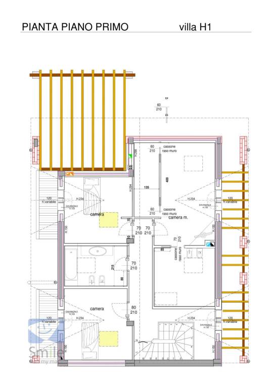 - al piano primo due ampie camere singole con bagno e camera padronale completa di cabina armadio e bagno dedicato.