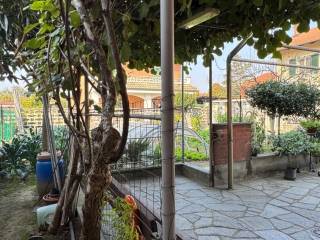 Piano terreno: luminosa zona giorno di oltre 20 mq., disimpegno, una camera, servizi e ampia cucina abitabile con accesso su retro giardino.