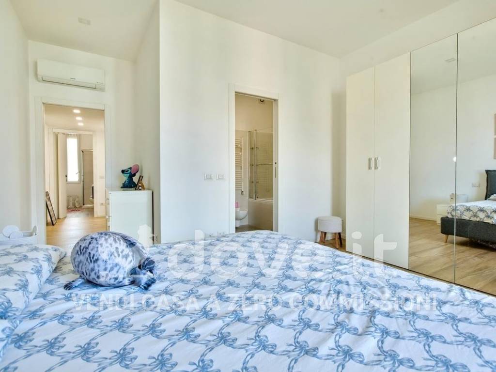 L'appartamento è stato oggetto di una ristrutturazione completa che ha interessato sia gli impianti elettrici e idraulici, sia le finiture. I pavimenti sono in gres porcellanato in tutti gli ambienti, gli infissi in PVC con doppio vetro sono dotati di zanzariere e tapparelle elettriche. È presente l'impianto di aria condizionata in tutti i locali, oltre a controsoffitti con faretti per un'illuminazione elegante e funzionale. L'immobile è inoltre arricchito da armadi a muro su misura, videocitofono, antifurto e un moderno sistema di domotica per la gestione delle termovalvole.