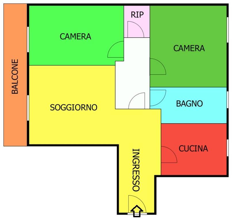 L'appartamento è così composto: Ampio ingresso, sulla sinistra troviamo un ampio soggiorno con possibilità di accesso al balcone esterno esposto a sud, mentre sul lato destro troviamo la cucina abitabile con affaccio verso nord, a seguire disimpegno giorno/notte, bagno finestrato, 2 camere da letto di cui una matrimoniale e una con portafinestra e accesso al balcone, infine un comodo ripostiglio.