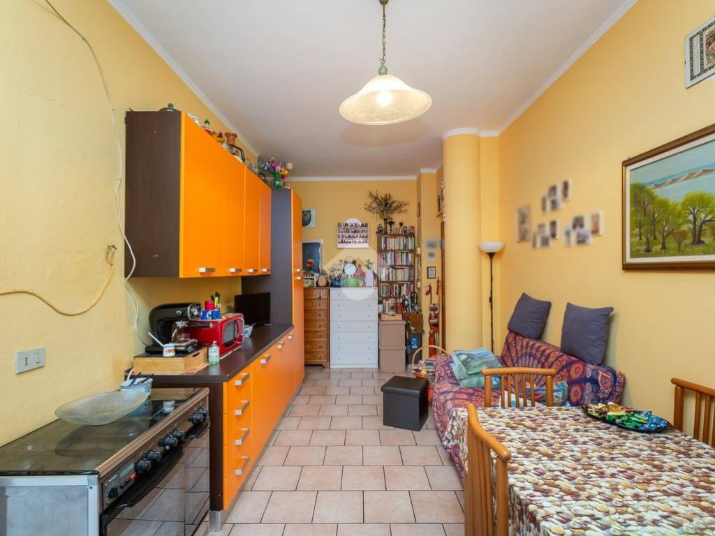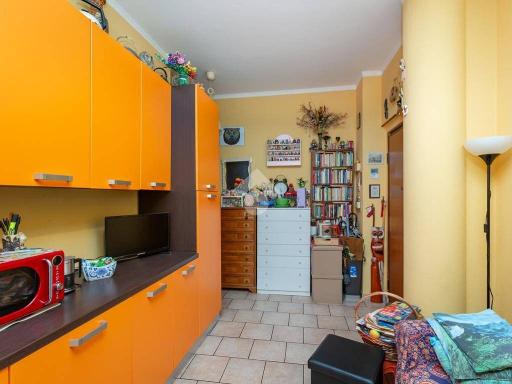 Tramite portoncino blindato si accede alla cucina abitabile dove c’è la possibilità di posizionare una cucina lineare con porta finestra con affaccio sul primo balcone con vista aperta e possibilità di stendere. Il disimpegno divide la zona giorno dalla zona notte dove è presente la camera da letto che risulta ben squadrata e facilmente arredabile con l’affaccio sul terrazzino. Il bagno, classico degli anni 70’ è dotato di finestra e di doccia. L’alloggio è stato ristrutturato nel 2012.
