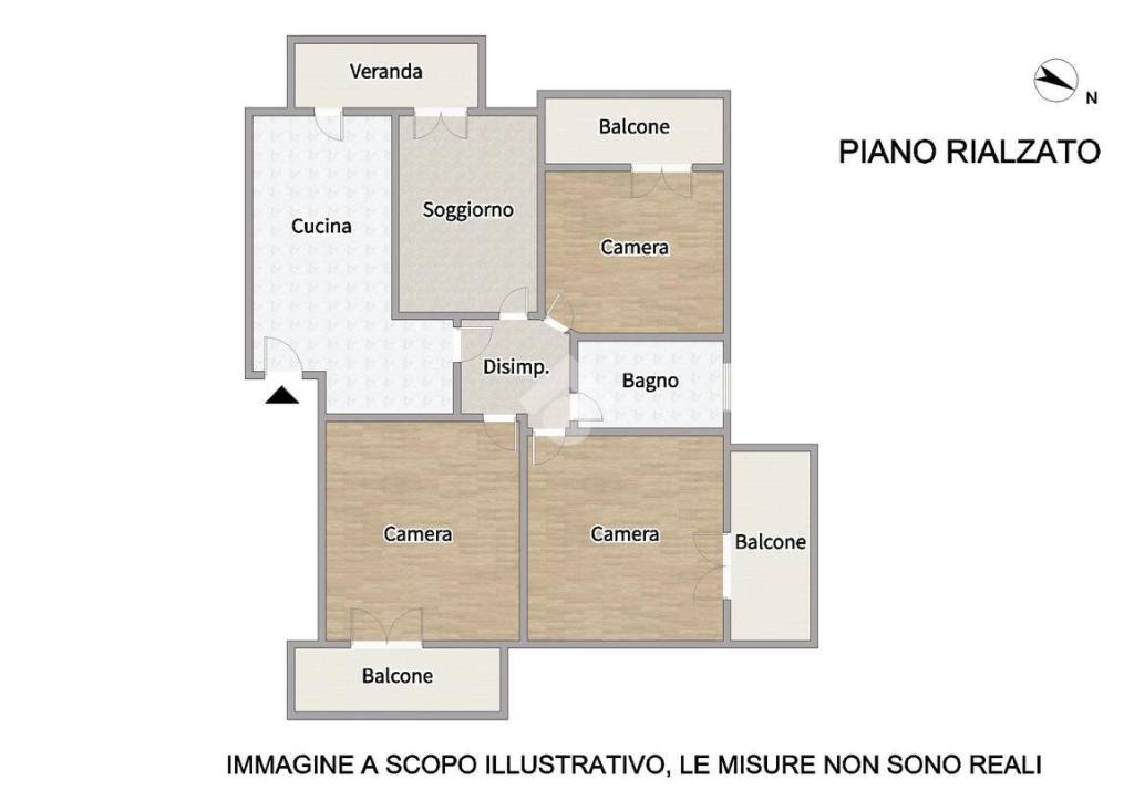 L’immobile è composto da ingresso sulla zona giorno con accesso diretto a una comoda veranda. Un disimpegno conduce alla zona notte dove troviamo quattro camere matrimoniali, tutte con accesso al balcone. Una delle stanze può essere utilizzata come soggiorno, a seconda delle esigenze. Completa l’appartamento un bagno finestrato con vasca.