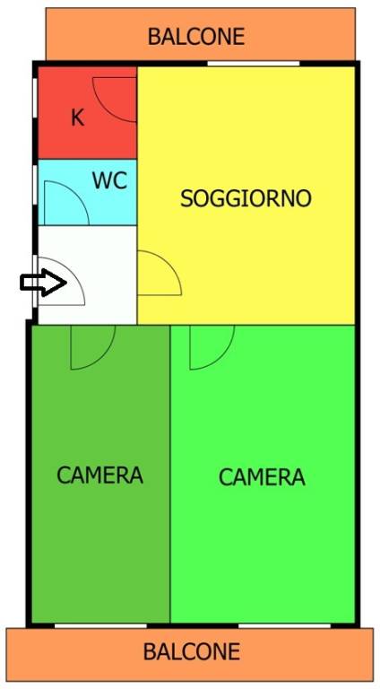 L'immobile completamente ristrutturato nel 2020 è così composto: Ingresso, sulla sinistra troviamo il bagno, sulla destra cameretta con portafinestra e accesso al balcone esterno esposto a Ovest sulla Via Cardinal Ferrari, di fronte all'ingresso si trova il soggiorno con portafinestra e accesso al balcone esposto ad est sull'interno del condominio, dall'ingresso si accede alla camera da letto matrimoniale anch'essa con portafinestra e affaccio ad ovest ed al cucinotto. Tutti gli ambienti sono finestrati.