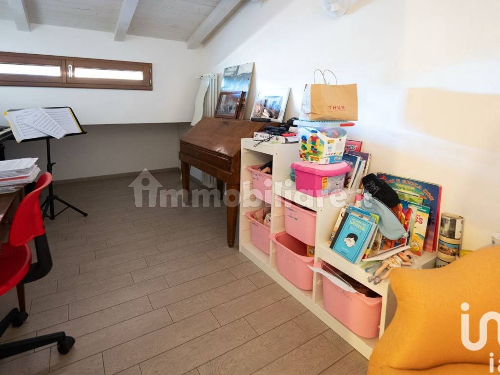 La zona notte si compone di due camere, uno studio, un bagno finestrato e una comoda stanza ripostiglio soffitta.