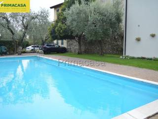 TOSCOLANO: Vicino a tutti servizi, a 300m dal lago in contesto di residence con piscina proponiamo appartamento su due piani composto da ingresso soggiorno e angolo cottura al piano terra, scala interna che porta al piano primo dove troviamo due camere e servizio. Posto auto interno alla proprietà e cantina esclusivi. Riscaldamento autonomo. Rif. 024