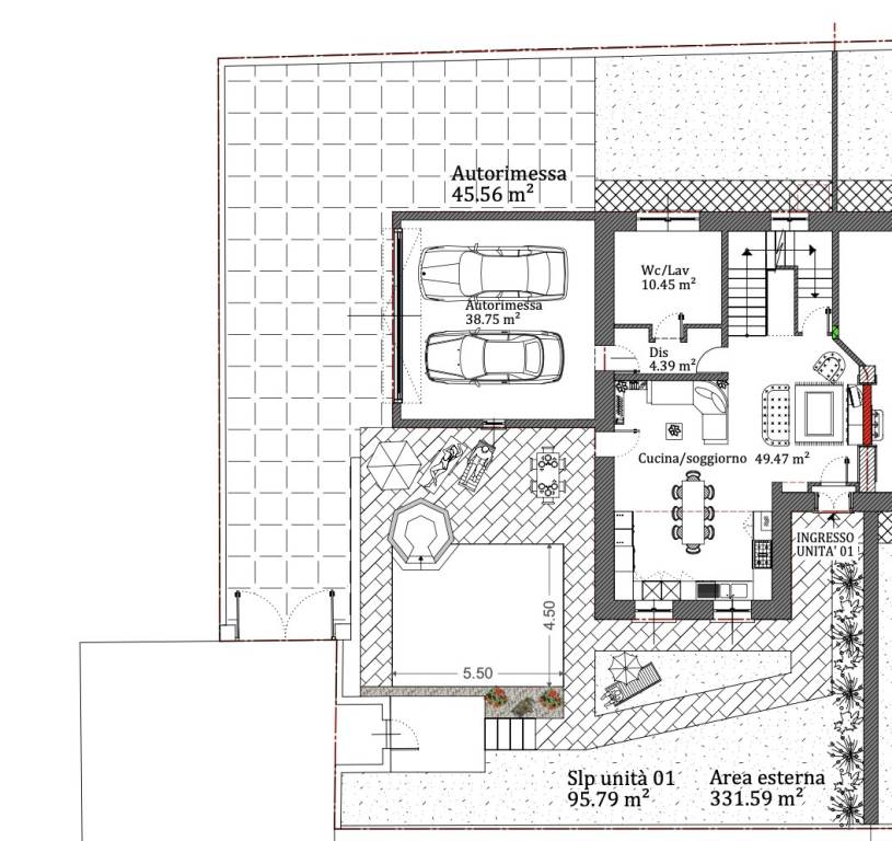 La soluzione è composta a piano terra da zona giorno open space di quasi 50 mq, bagno con zona lavanderia e box auto doppio.