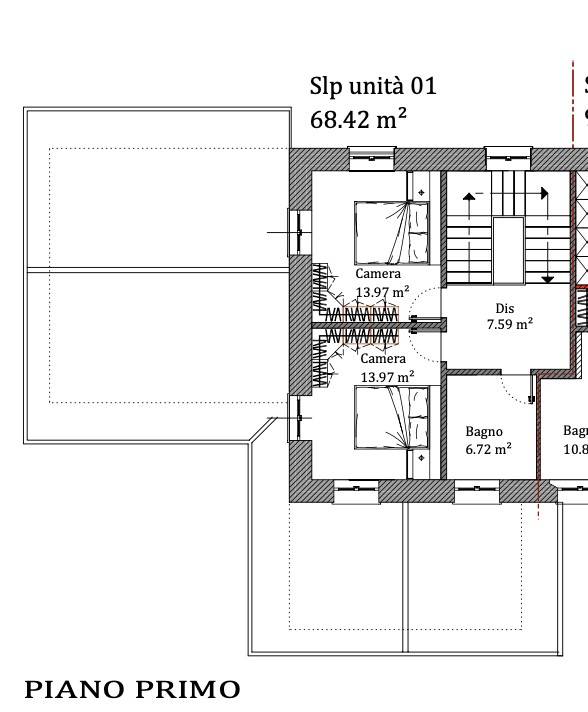 Al piano primo troviamo la zona notte con due camere matrimoniali e bagno.