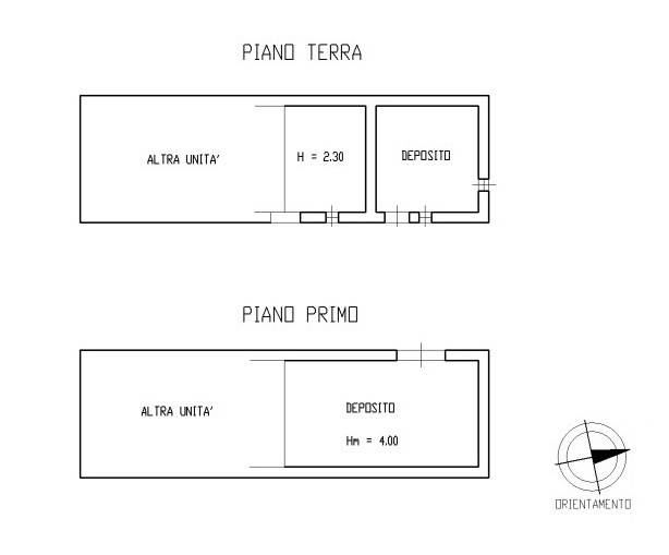 L’immobile, interamente da ristrutturare, si sviluppa su due livelli. Al piano terra si trovano due locali adibiti a deposito, mentre al piano primo si trova un ampio locale deposito di generosa metratura. Le solette e la copertura sono in legno, con tetto in coppi tradizionali.