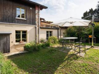 L’ingresso conduce nella grande zona giorno, dove il camino in pietra e le travi a vista raccontano il carattere della casa. Gli ambienti sono ampi, proporzionati e collegati in modo armonioso: il soggiorno dialoga con la sala da pranzo e la cucina abitabile, affacciata sul verde privato. Ogni spazio invita a vivere la quotidianità con naturalezza, tra momenti di condivisione e di relax.
