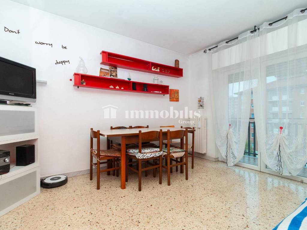 La zona giorno è composta da un tinello spazioso, capace di ospitare un comodo divano e una parete attrezzata TV, e da un cucinotto angolare ben organizzato, ideale per chi ama cucinare in un ambiente pratico e luminoso.