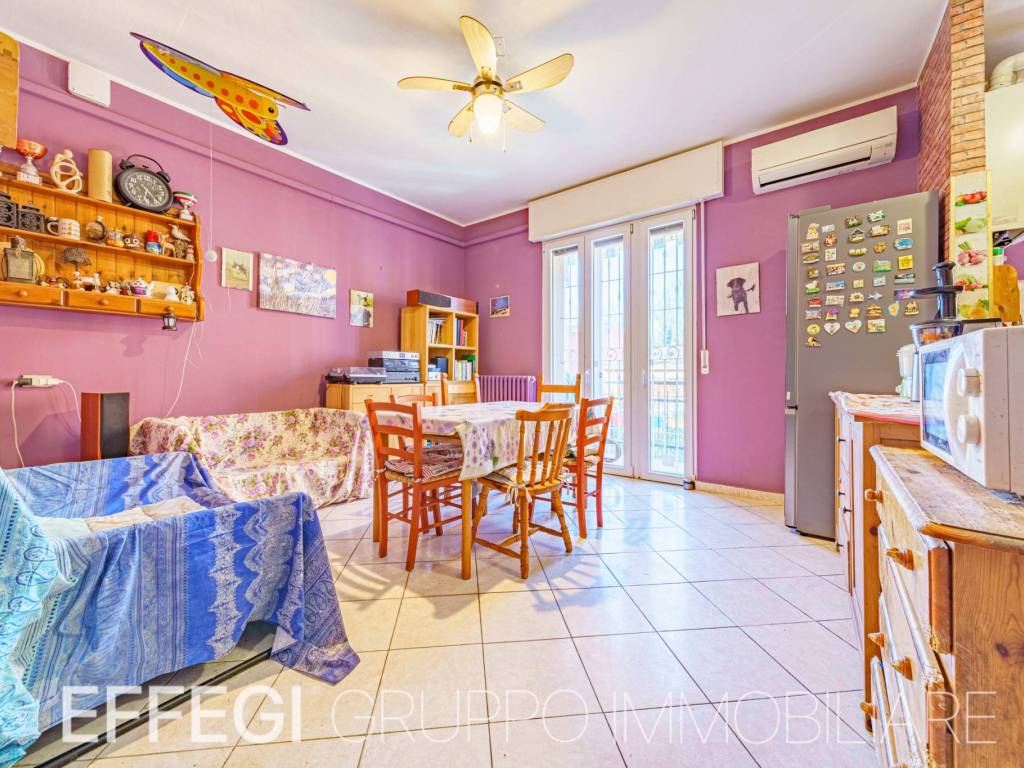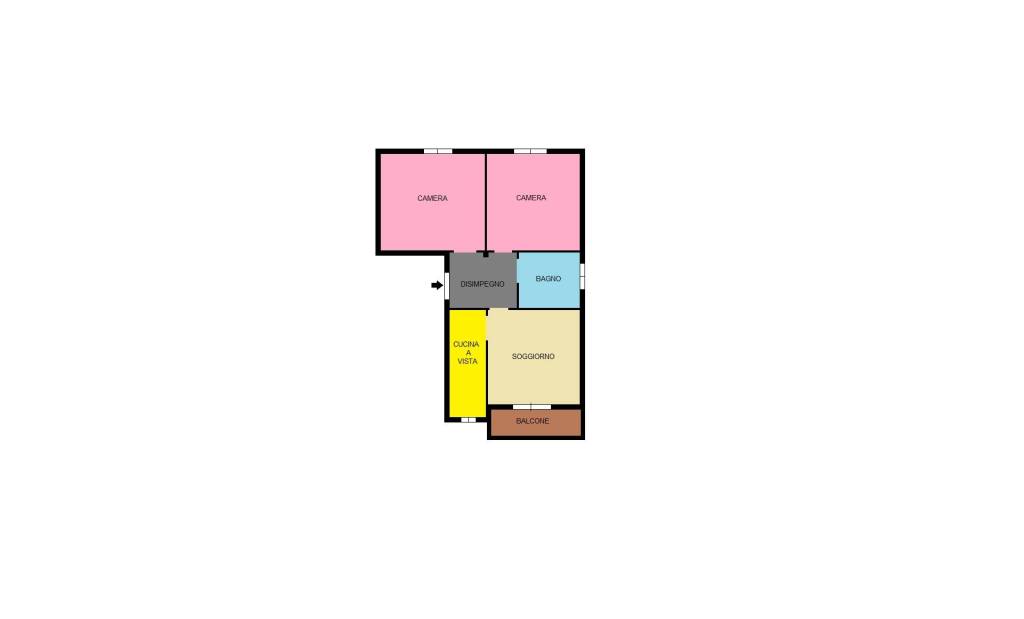 L’appartamento è composto da un comodo disimpegno d’ingresso che conduce alla zona giorno costituita dal soggiorno con cucina a vista e accesso al balcone. Attraverso il disimpegno troviamo il bagno con vasca e due spaziose camere da letto.