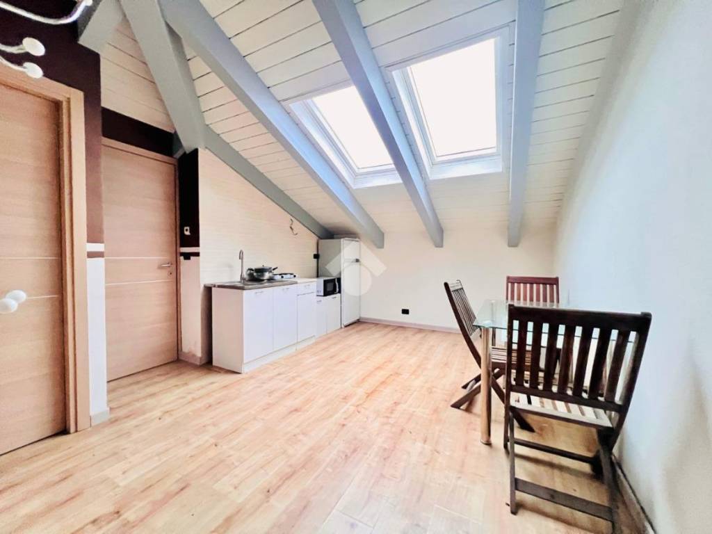 L'ingresso dell'appartamento è living sul soggiorno con angolo cottura. La camere sono due in modo da personalizzare come sala da pranzo una delle due. Il bagno è dotato di doccia. I materiali sono recenti e ancora in discreto stato conservativo. Il riscaldamento è semi-autonomo a metano con sistema radiante a pavimento. Le spese condominiali sono di circa 50 euro mensili.