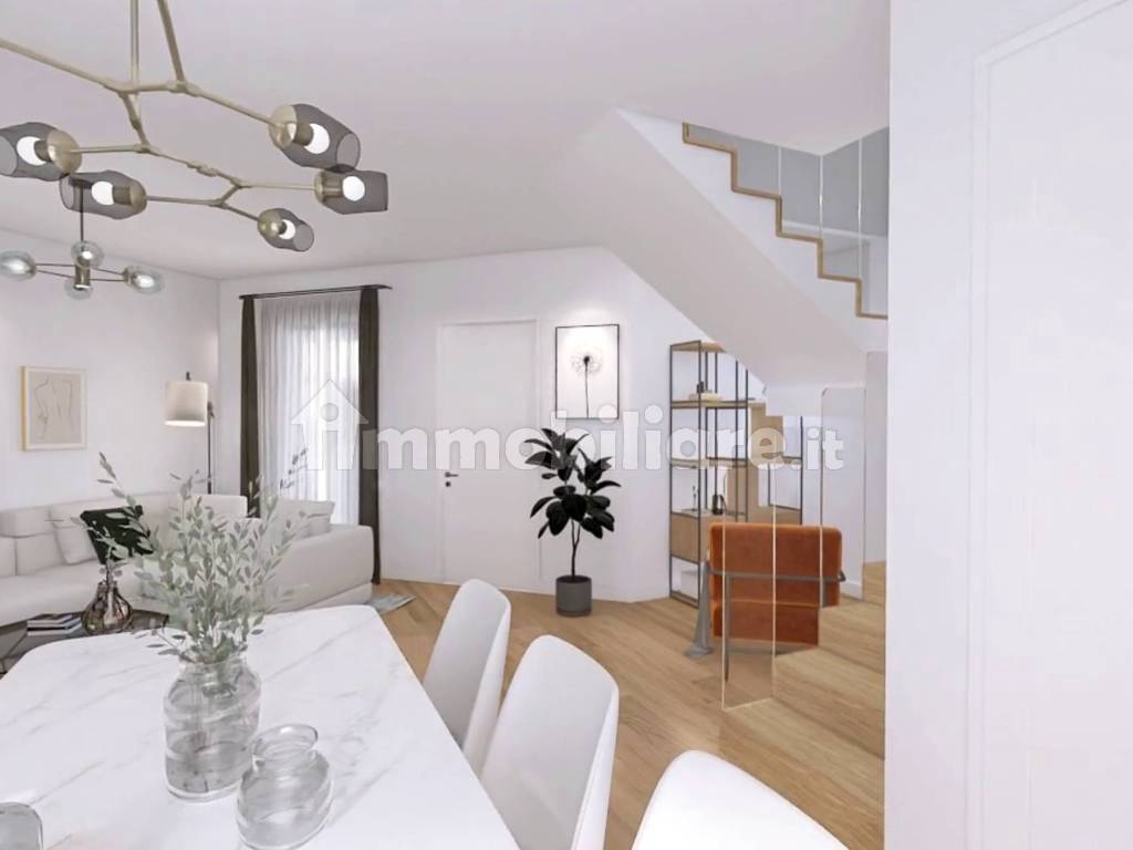 Al piano terra, la protagonista è la zona giorno open space di 45 mq, ampia e luminosa, dove cucina, pranzo e soggiorno convivono armoniosamente e si aprono sul loggiato e sull’ampio giardino angolare di 120 mq. Un bagno di servizio completa il piano.