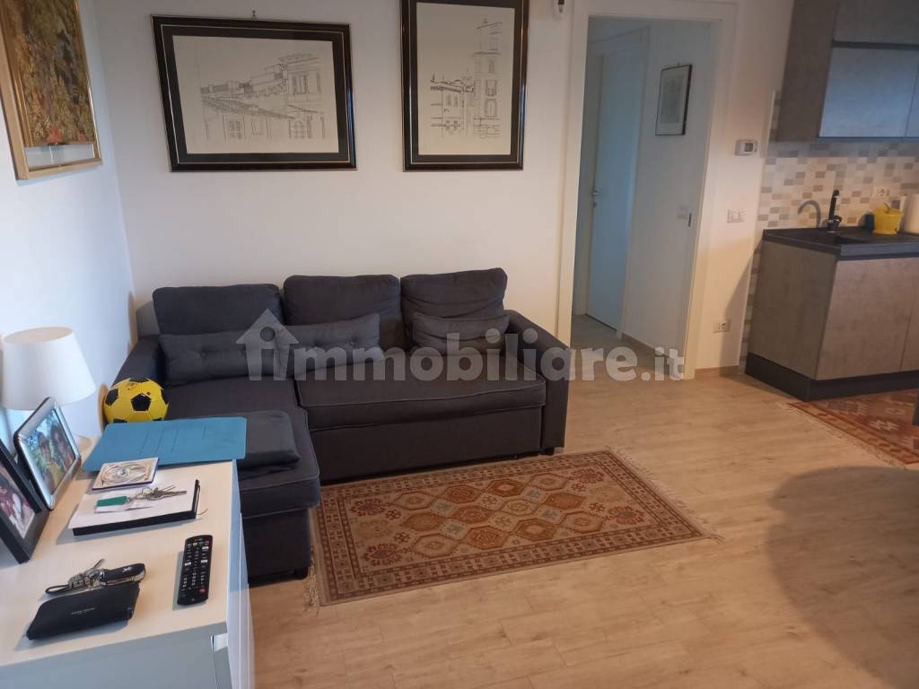 in palazzina di recente costruzione di soli 3 piani appartamento posto al primo piano con affacci completamente sul verde composto da soggiorno con angolo cottura disimpegno camera da letto servizio finestrato ed ampio terrazzo panoramico completamente vivibile. completano la proprieta' una soffitta con finestra adatta anche come studio ed un posto auto con cancello elettrico e sbarra. ottimo investimento euro 165.000.