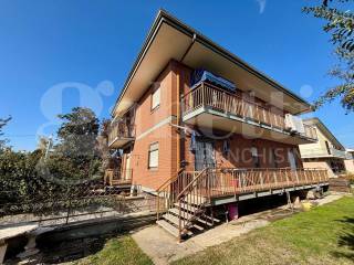 La soluzione è libera su quattro lati e composta da due appartamenti identici di 130 mq l'uno così disposti: ingresso su disimpegno, soggiorno living con camino, cucina abitabile, due ampie camere da letto, doppi servizi e ripostiglio. Tramite vano scala si accede all'appartamento al piano primo ed al sottotetto grezzo al piano secondo. Al piano interrato invece due box auto doppi di 22 e 25 mq con accessi separati. Gli appartamenti godono di tre ampi balconi e del giardino circostante di 500 mq circa.