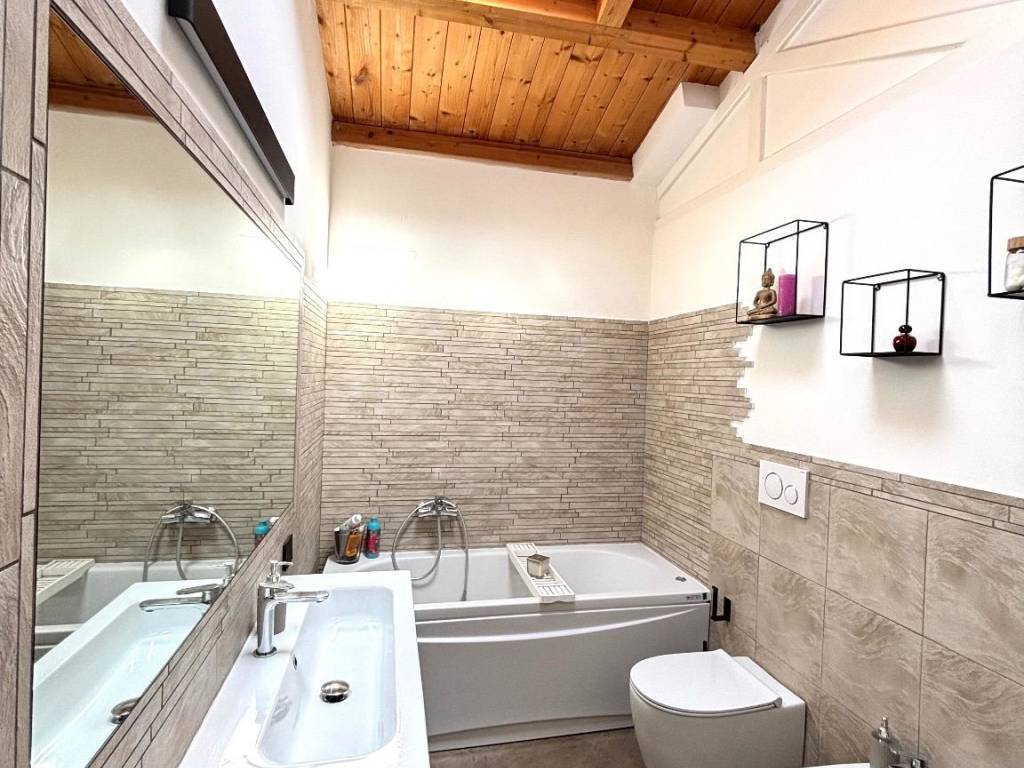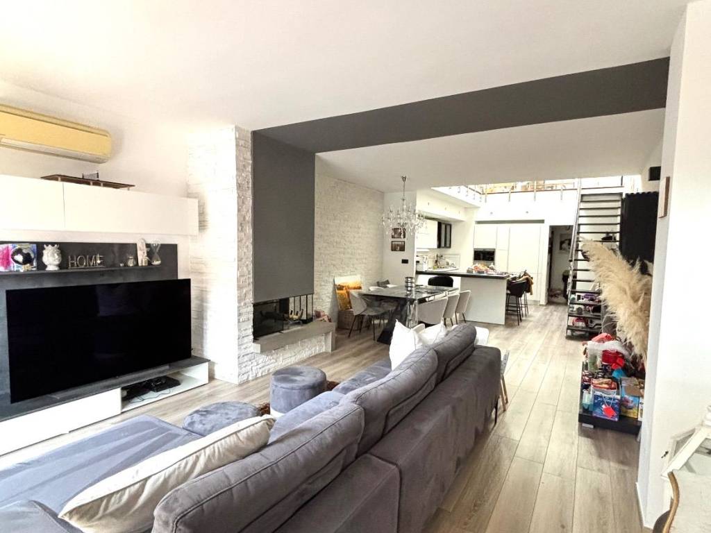 Al piano superiore la zona notte è composta da una camera matrimoniale con balcone, seconda cameretta, bagno con vasca idromassaggio e un ampio soppalco luminoso con eventuale possibilità di terza camera.