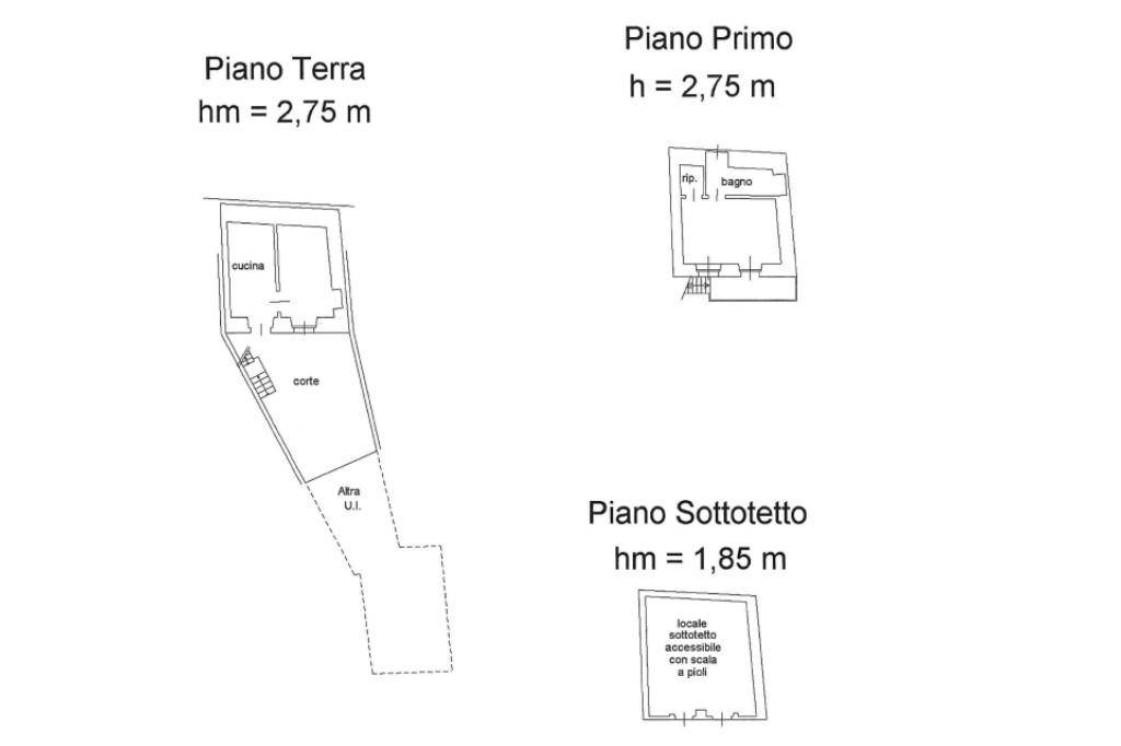 In corte tranquilla e comoda ai servizi, proponiamo bilocale completamente da ristrutturare, disposto su due livelli con scala esterna e possibilità di realizzare collegamento interno.