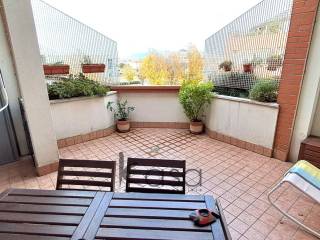 In contesto ideale per ogni genere di servizi, grazioso appartamento di buona metratura : ingresso sulla luminosa zona giorno, con cucina a vista e accesso sul'ampio e comodo terrazzo abitabile, bagno di servizio con lavanderia e disimpegno ad uso ripostiglio; nella zona notte troviamo camera matrimoniale, 2nda camera e bagno principale. Completa la proprietà un garage singolo e una comodissima cantina. L'appartamento è in perfetto stato generale, dotato di aria condizionata e con predisposizione all'impianto d'allarme, cucina attrezzata di elettrodomestici inclusa.