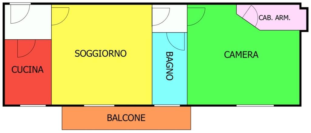 L'appartamento è così composto: Ingresso, di fronte troviamo la cucina abitabile, a seguire troviamo l'ampio soggiorno con portafinestra e accesso al balcone esterno con affaccio sulla Via De Gasperi esposto ad Est, tramite un piccolo disimpegno si accede al bagno finestrato e alla camera da letto matrimoniale con una piccola cabina armadio.