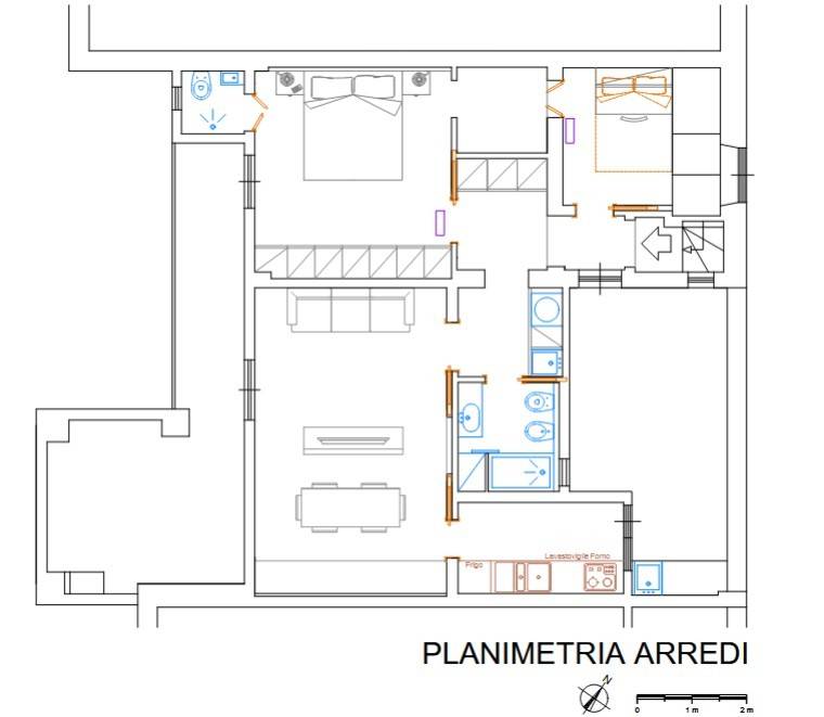 • Zona lavanderia nascosta in armadio a muro, con pozzetto, lavatrice e asciugatrice nuove + 3 predisposizioni aggiuntive (2 esterne, 1 interna)