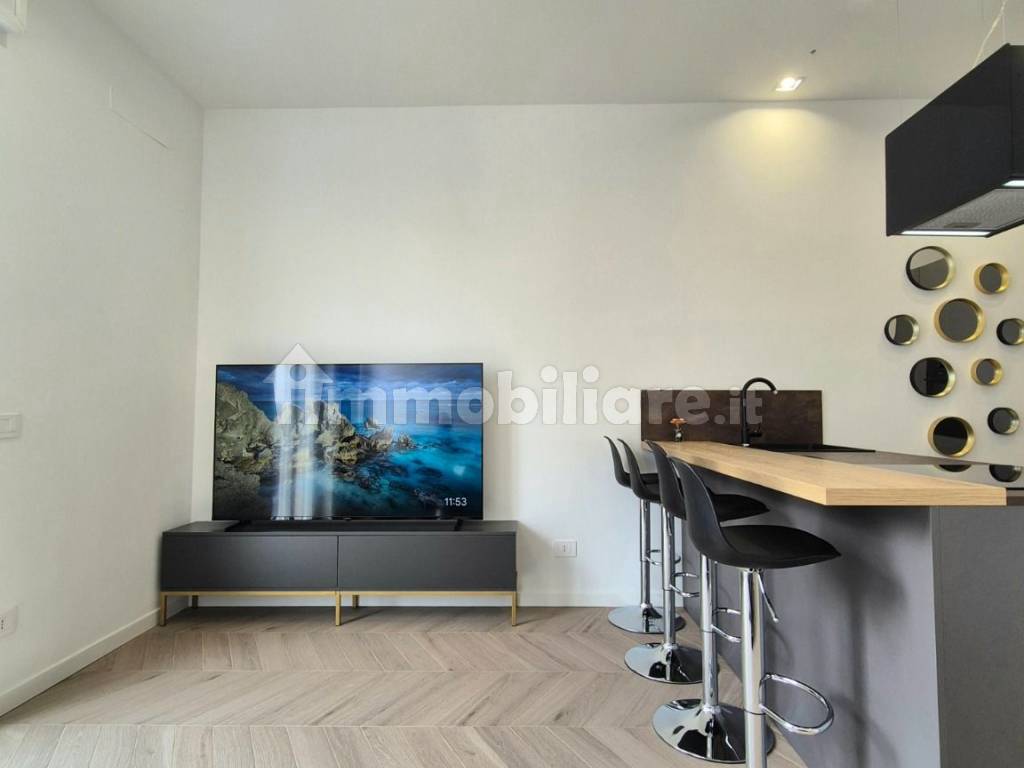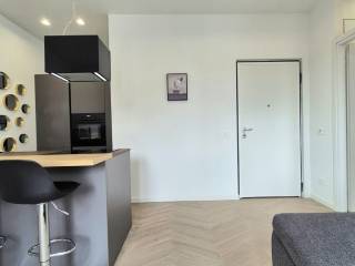 Bilocale completamente ristrutturato posto al quinto piano in signorile condominio con portineria, composto da sala con accesso al balcone, cucina a vista dotata di ampio piano snack e sgabelli realizzata su misura e attrezzata di tutti gli elettrodomestici in classe A marca Elettrolux, ampio bagno finestrato con doccia e spaziosa camera da letto. I pavimenti sono in grés porcellanato effetto parquet marca Marazzi, gli impianti sono tutti nuovi e certificati. Domotica avanzata, sistema Bticino Matrix Go con controllo centralizzato delle tapparelle e prese intelligenti. Infissi nuovi con isolamento acustico e termico, ribassamenti in controsoffitto con faretti a led a basso consumo energetico, nuova smart tv con schermo da 65 pollici, mobiletto sala e divano nuovi. Mai abitata, pronta all'uso. Solaio di pertinenza. info@immobilquattrosrl.it