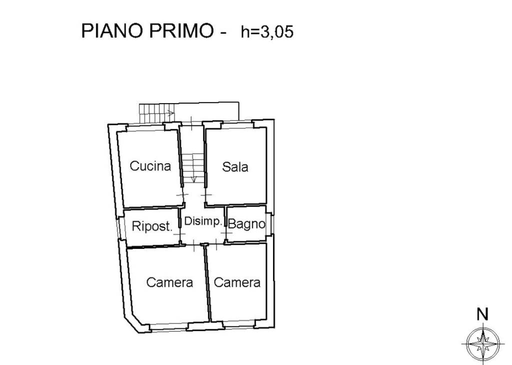 Al primo piano, raggiungibile tramite scala esterna, si accede all’ingresso dell’abitazione.