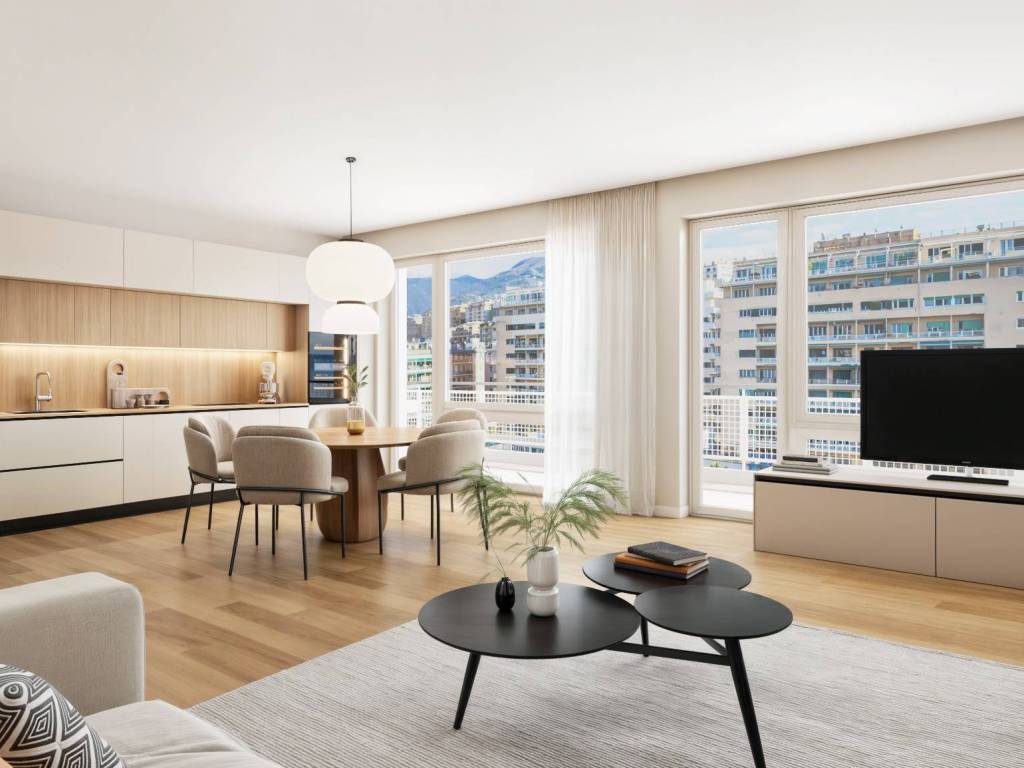 Il progetto prevede un ingresso su ampio salone open space con cucina a vista, affacciato su una balconata panoramica con vista aperta sul mare e sul Monte di Portofino, accessibile da tutti i locali e capace di garantire grande luminosità.