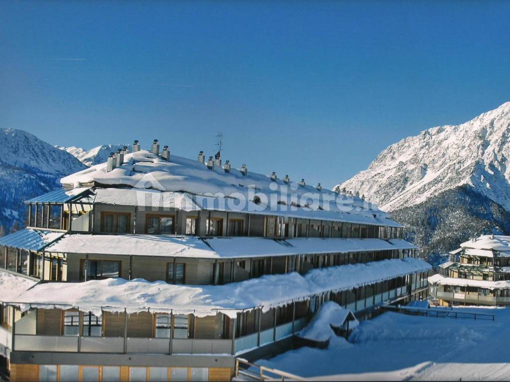 Nel cuore della via lattea con oltre 400 km di piste da sci, vendiamo alloggio finemente arredato. Nel Residence 25, al primo piano con accesso diretto dal garage con comodo ascensore, ingresso, soggiorno luminoso con cucinotto separato, due camere da letto, doppi servizi completi. Balcone angolare. Ampio box auto e cantina. Giardino di pertinenza.
