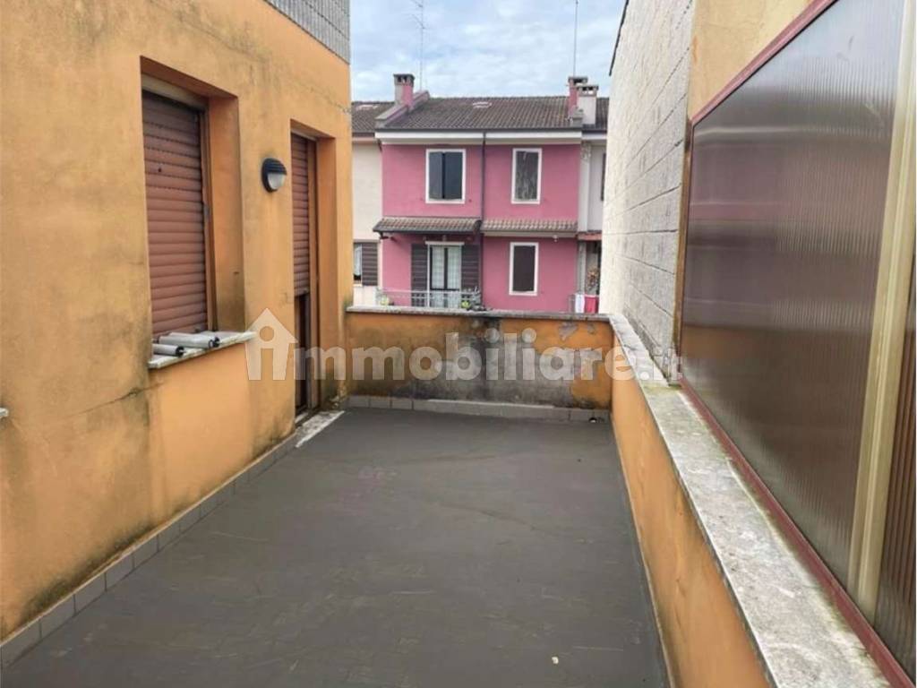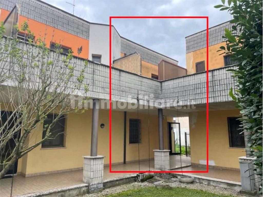 Villetta a schiera sviluppantesi su due piani fuori terra, facente parte di complesso residenziale e composta: al piano terra, da ingresso-soggiorno, cucina, lavanderia e vano scale; al piano primo, da vano scale, disimpegno, due camere da letto, bagno e balcone; con annessa area cortiliva al piano terra, ad uso giardino; con garage. Libero da persone