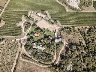 Accanto alle residenze, la parte funzionale della tenuta si integra con discrezione nel paesaggio: un deposito per gli attrezzi agricoli, una tettoia dedicata ai mezzi e un deposito per l’acqua completano le dotazioni essenziali dell’azienda. L’intera superficie è servita da acqua irrigua, mentre il vigneto dispone di un impianto di irrigazione completo. La presenza di falde superficiali rende inoltre possibile la realizzazione di pozzi, ampliando le potenzialità agricole della proprietà. Il terreno fertile e il microclima favorevole permettono non solo la coltivazione della vite, ma anche la crescita rigogliosa di giardini ornamentali e piante da frutto, offrendo un ulteriore tocco di bellezza e autosufficienza.