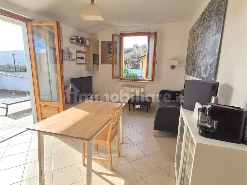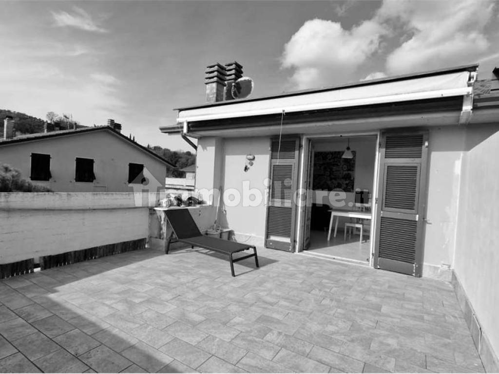 L'immobile si compone di ingresso in soggiorno con cucina a vista e accesso alla terrazza pranzabile di circa 30 mq con pavimentazione nuova, camera singola, camera matrimoniale, bagno finestrato e secondo bagno di servizio.