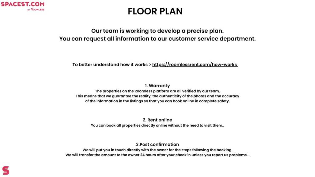 - The minimum contractual stay will correspond to the booking period on Roomless. If you wish to leave before the check-out date selected at the time of booking, you may exercise the option of early departure by paying 1.5 month's rent. In the event that you wish to have a tenant take over (whether the owner or the current tenant finds him/her), you may leave the flat by paying a service charge of €200. In this case the contract will end the day before the replacement tenant moves in. A closing charge of €225 will also be due.. In any case, 3 months before the check-out date, the regular cancellation must be communicated in order to terminate the contract on the established date; if no such communication is made, the contract will remain active.