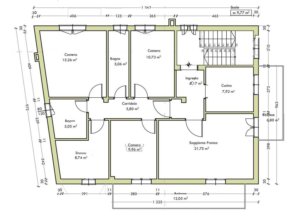 - unità al SECONDO PIANO di circa 150 mq lordo muri composta da ingresso indipendente al piano terreno, vano scale, soggiorno 22 mq, cucina, quattro camere, due servizi finestrati, 2 terrazzi con, al piano terreno, un garage di 26 mq. Cl G 315,68 Kwh mq anno