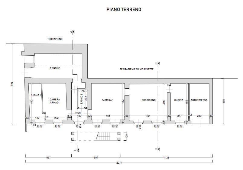 Il piano terra completamente da ristrutturare è composto da cucina abitabile, sala da pranzo, salone, camera da letto, due bagni e cantina. Caratteristiche fondamentali sono: l'accesso diretto al giardino e la possibilità di realizzare un progetto che segua le proprie necessità.