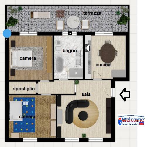 L’appartamento, luminoso e ben distribuito, offre ambienti generosi e funzionali ed è composto da: