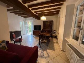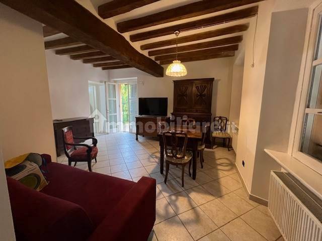 Pittolo, nella parte storica di una vecchia corte completamente ristrutturata, ampio bilocale con accesso indipendente che conduce ad un grande e luminoso soggiorno con travi a vista, cucina separata collegata a riservato portico, camera da letto matrimoniale, bagno, giardino di proprietà e box al piano interrato. l'immobile si presenta in ottimo stato manutentivo. riscaldamento autonomo e condizionamento. Classe Energetica: G