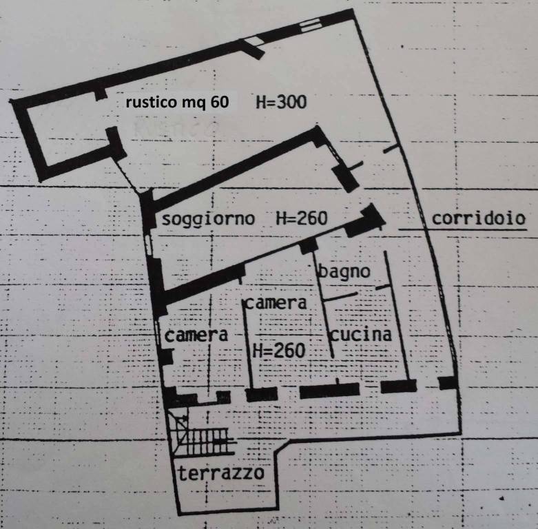 L'appartamento di circa 100 mq è al primo piano composto da soggiorno, cucina, corridoio, bagno, due camere , rustico (60mq), sottotetto, parcheggio e box auto.