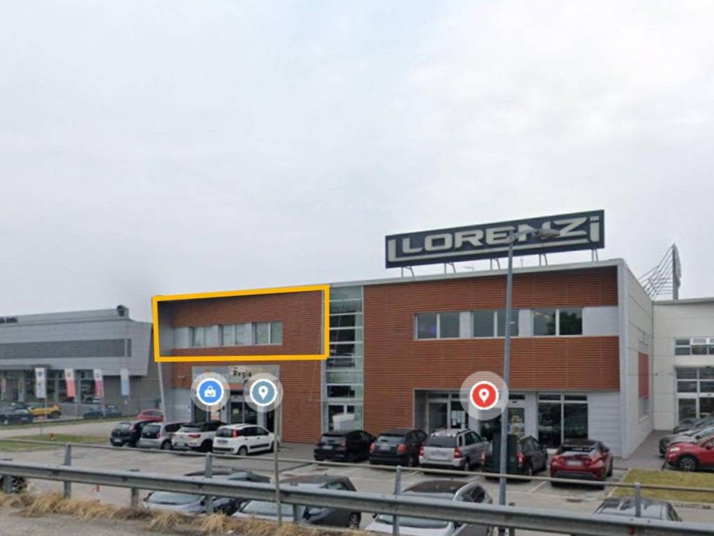 Ditta costruttrice affitta ufficio di ca. mq. 130 situato al primo piano di un fabbricato ad uso commerciale - direzione in Via Oslo, fronte Via Regia, a Vigonza, con vista da autostrada "A4". All'esterno del fabbricato ci sono parcheggi a disposizione delle attività commerciali.