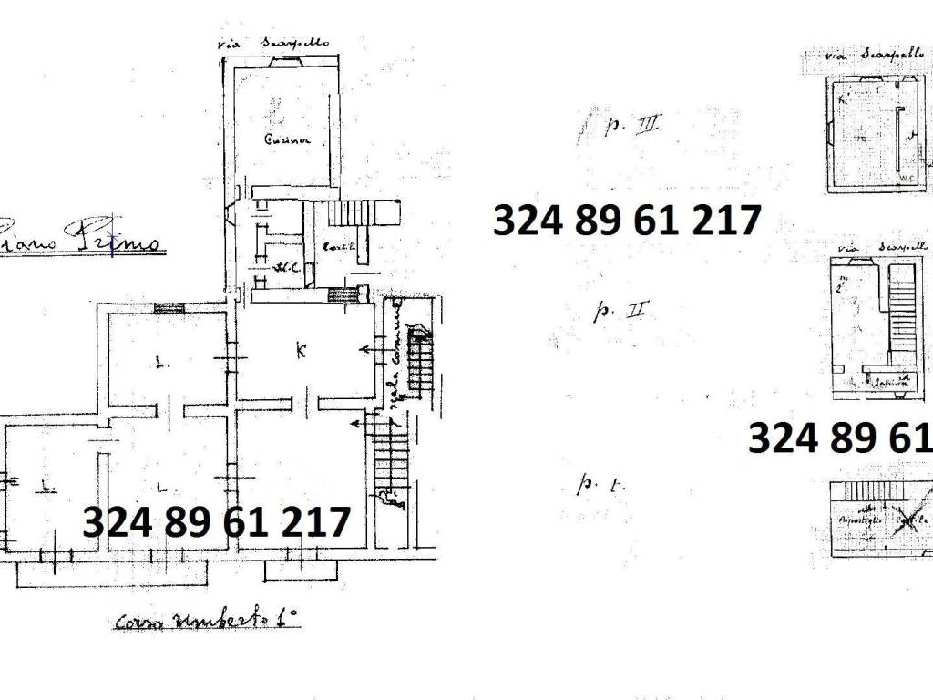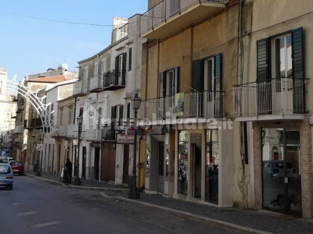 composto da salone e due camere da letto con tetti a volta, stucchi e balconi sul corso, sala da pranzo, studio, cucina abitabile, cucinino, tre bagni, cantina, altre due stanze con balconi al secondo e terzo piano, ampia dotazione idrica, termo autonomo. Da ristrutturare.