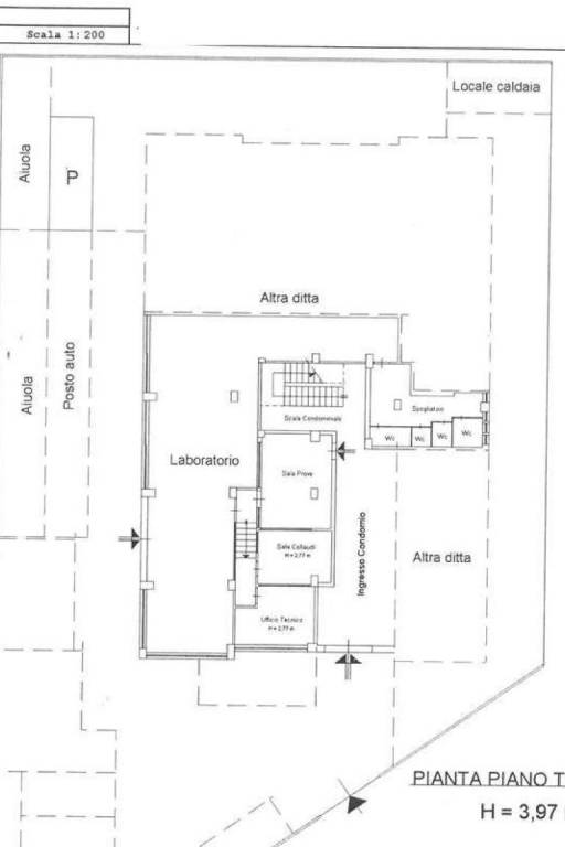 Superficie complessiva metri quadri 170 , così composta: ampio ingresso-reception, disimpegno, tre vani ufficio, grande magazzino altezza oltre 4m carrabile e zona servizi (4 wc).